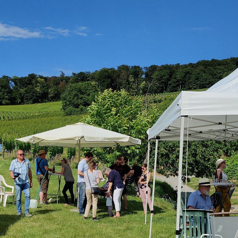 Die zur Verkostung vorgesehenen und gekühlt im Weinberg vorgehaltenen Flaschen waren so schnell getrunken, dass zur Halbzeit Nachschub aus den häuslichen Weinkellern beschafft werden musste.